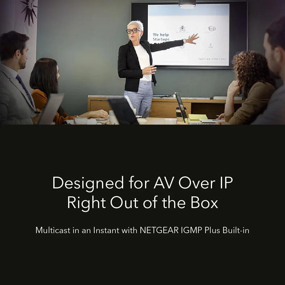 Switching engineered for 1G AV over IP with versatile mounting options for under a table or behind a display. Pre-configured for out-of-the-box functionality!